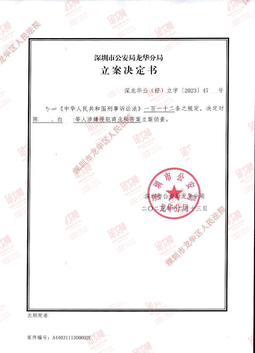 - 当前位置:首页 > 长昊指导案例 > 商业秘密案例 > 商业秘密停止侵权案例 > 深圳一起侵犯商业秘密罪立案成功